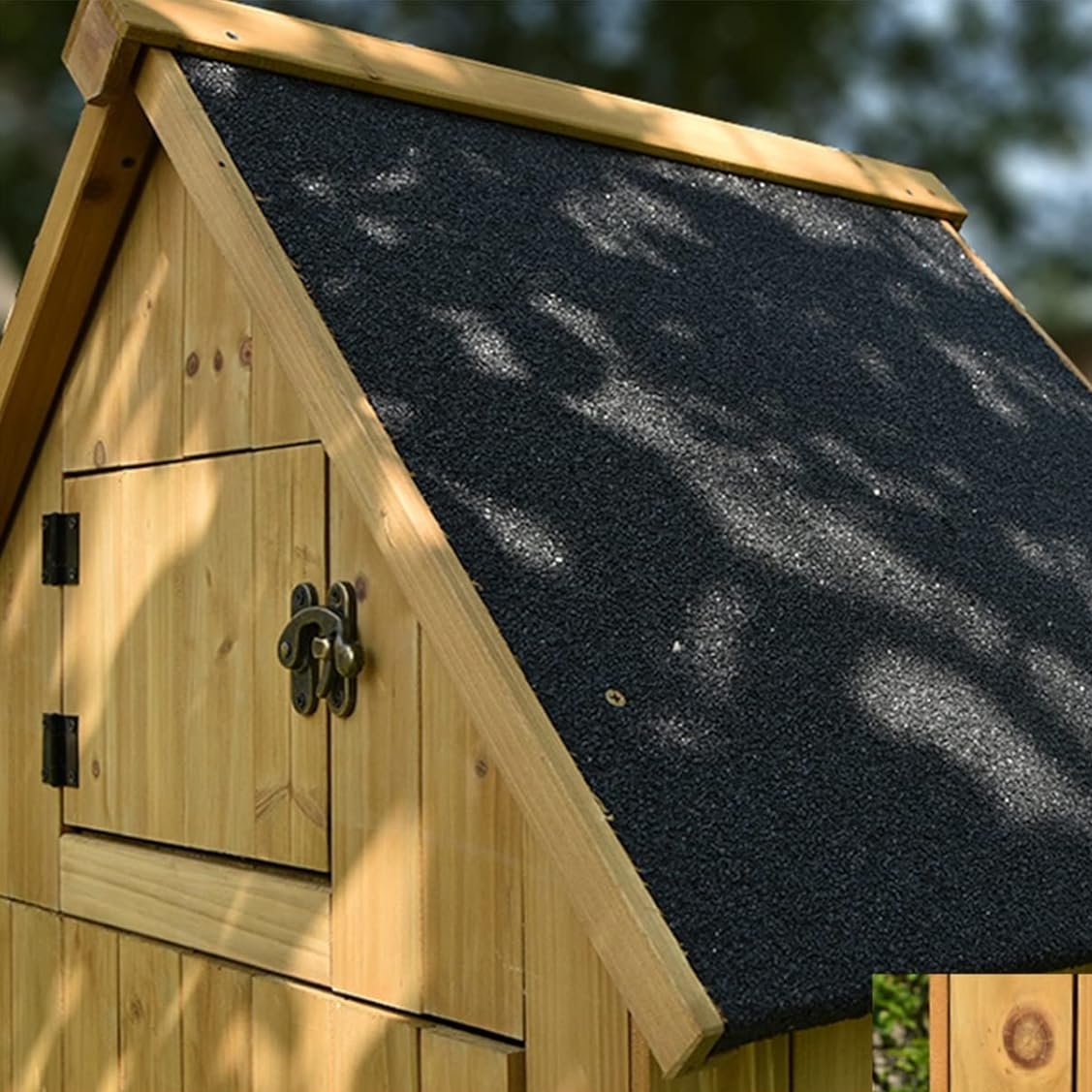 • ☔ Protection contre les intempéries : Le toit incliné intelligemment conçu empêche l'accumulation d'eau, protégeant les objets stockés par temps pluvieux.