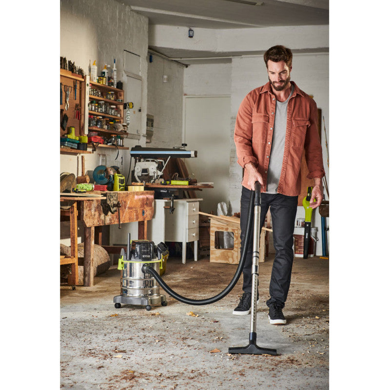 Aspirateur eau et poussière 18V RYOBI R18WDV-0 - cuve inox 18L -11,4 kPa - 1,4 m3/min + Accessoires