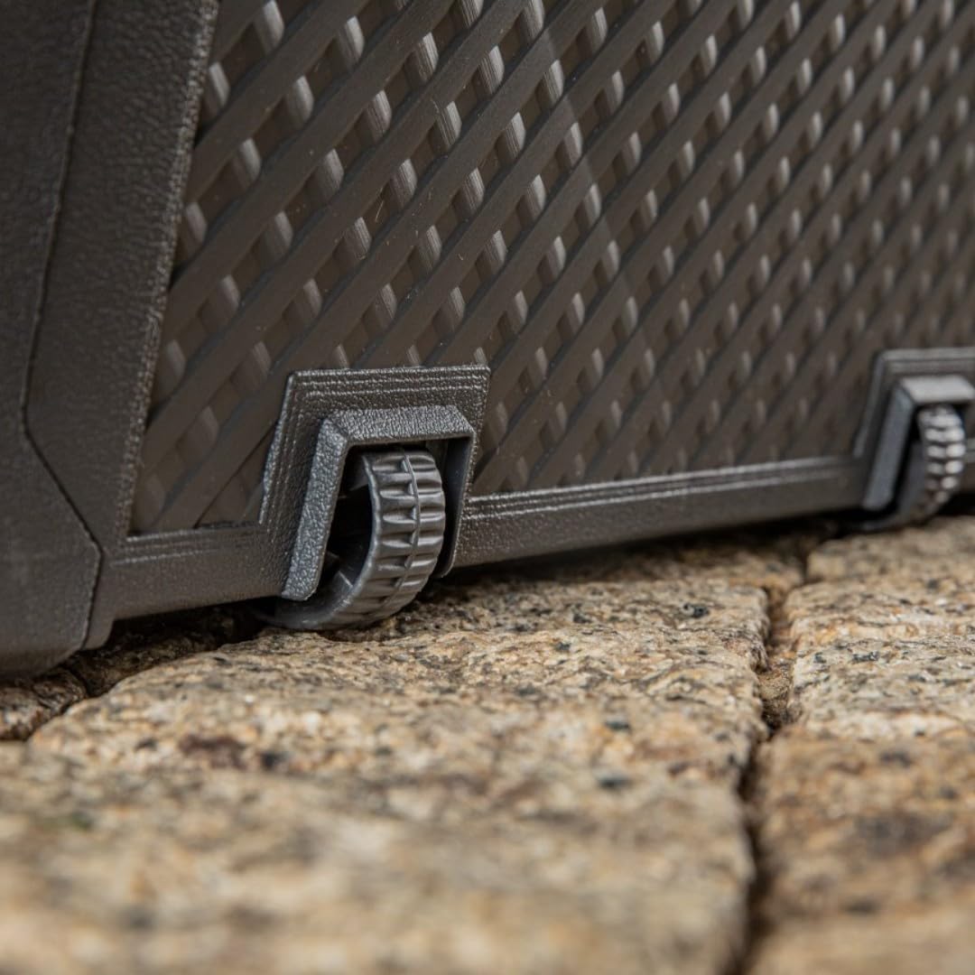 Découvrez le "Coffre de jardin 270L - Coloris marron", une solution de rangement extérieure à la fois robuste et élégante, conçue pour organiser et protéger vos essentiels de jardin.