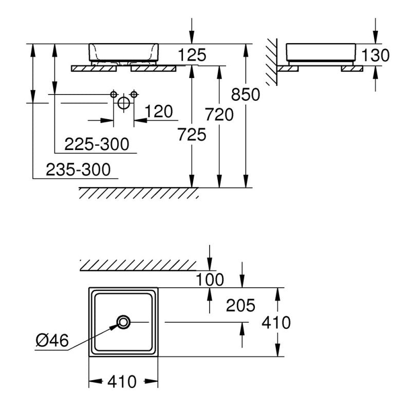 Caractéristiques techniques Vasque à poser CUBE CERAMIC GROHE 3948200H 40 cm :